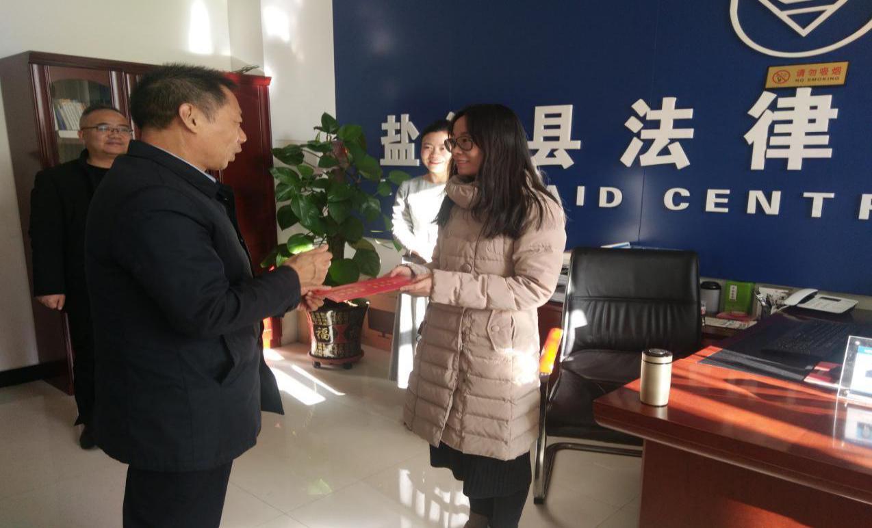 春劳副厅长为“1+1”法律援助律师及志愿者送上慰问金,并详细询问了他们的工作和生活情况,祝愿他们度过一个祥和愉快的新春佳节。