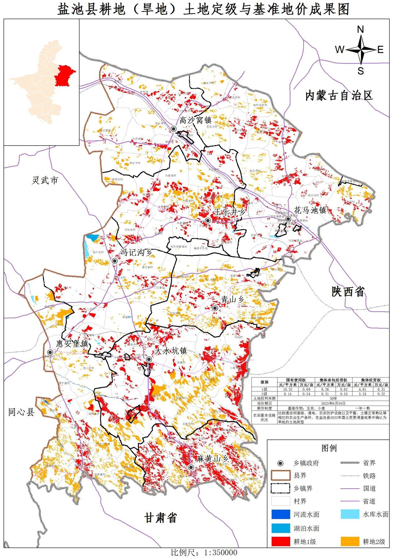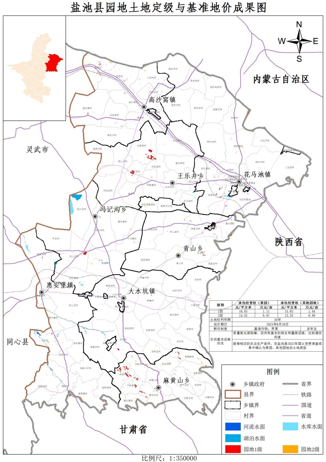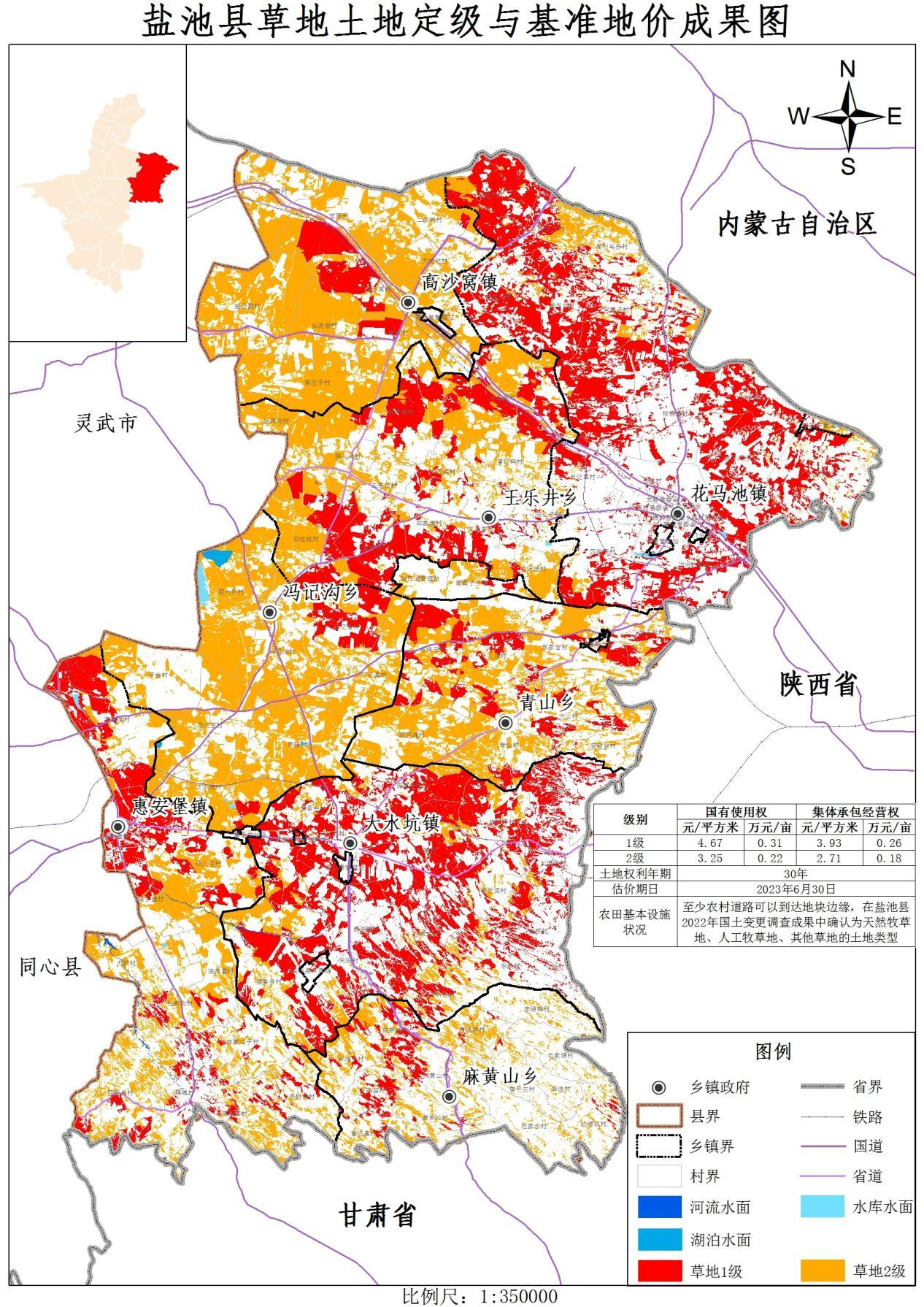 为进一步深化自然资源市场化配置,加快推进自然资源资产产权制度改革,根据自然资源部办公厅《关于做好园地林地草地定级和基准地价制定有关工作的通知》(自然资办函〔2023〕393 号)和宁夏回族自治区自然资源厅《关于做好园地林地草地定级和基准地价制定有关工作的通知》(宁自然资办发〔2023〕17 号)文件精神,我县完成了本辖区内耕地、园地、林地、草地定级与基准地价评估工作,成果已通过自治区自然资源厅验收,经吴忠市人民政府《关于盐池县耕地、园地、林地、草地土地定级与基准地价评估成果的批复》(吴政土批字〔2024〕40号)批准,同意公布实施。经盐池县人民政府研究决定,现将评估成果通告实施。