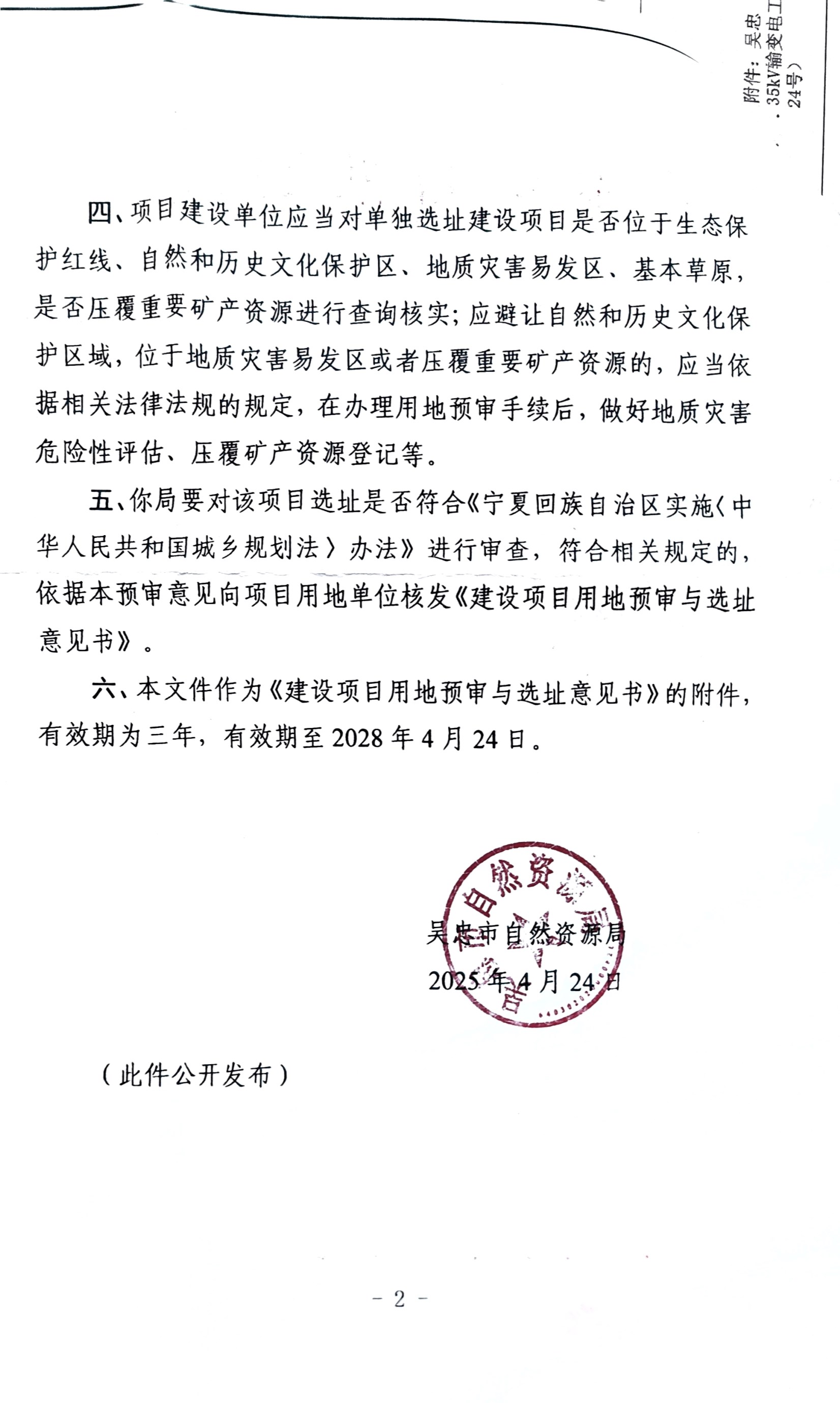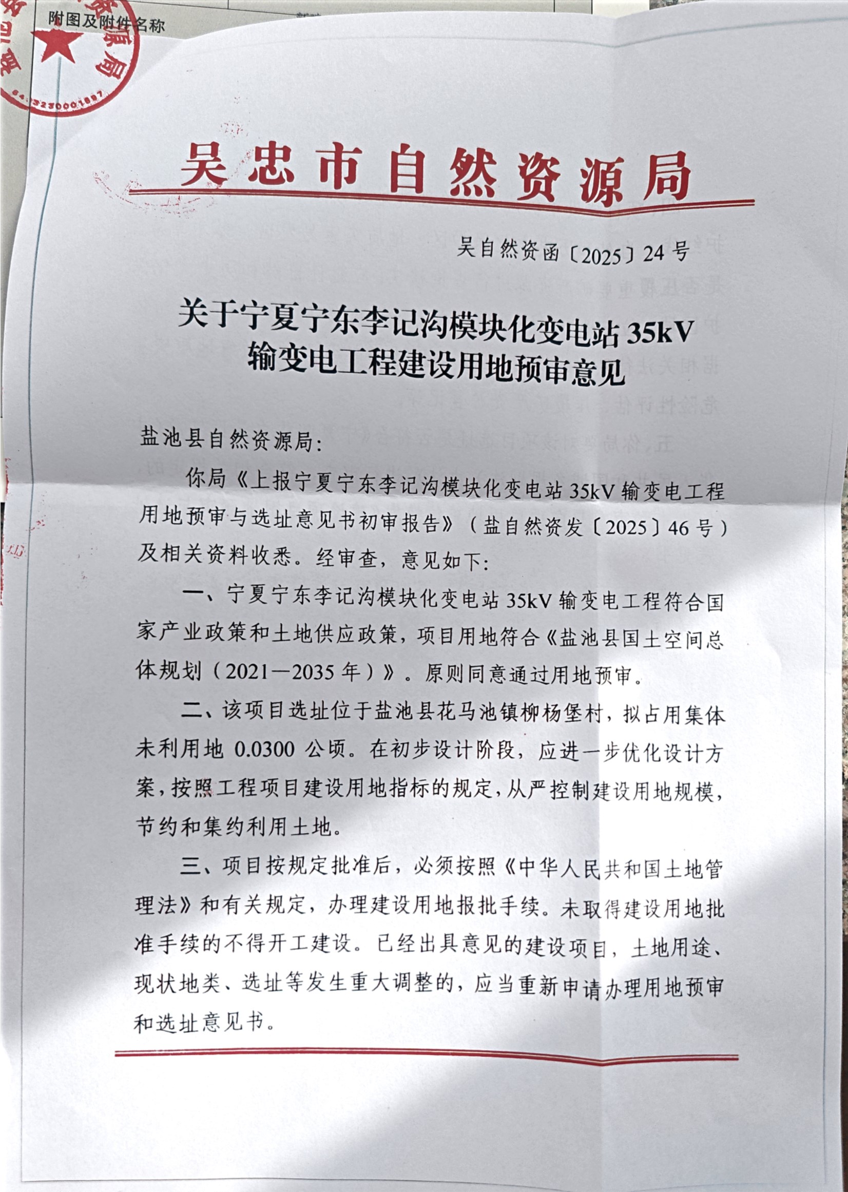 宁夏宁东李记沟模块化变电站35kV输变电工程建设项目用地预审与选址意见书