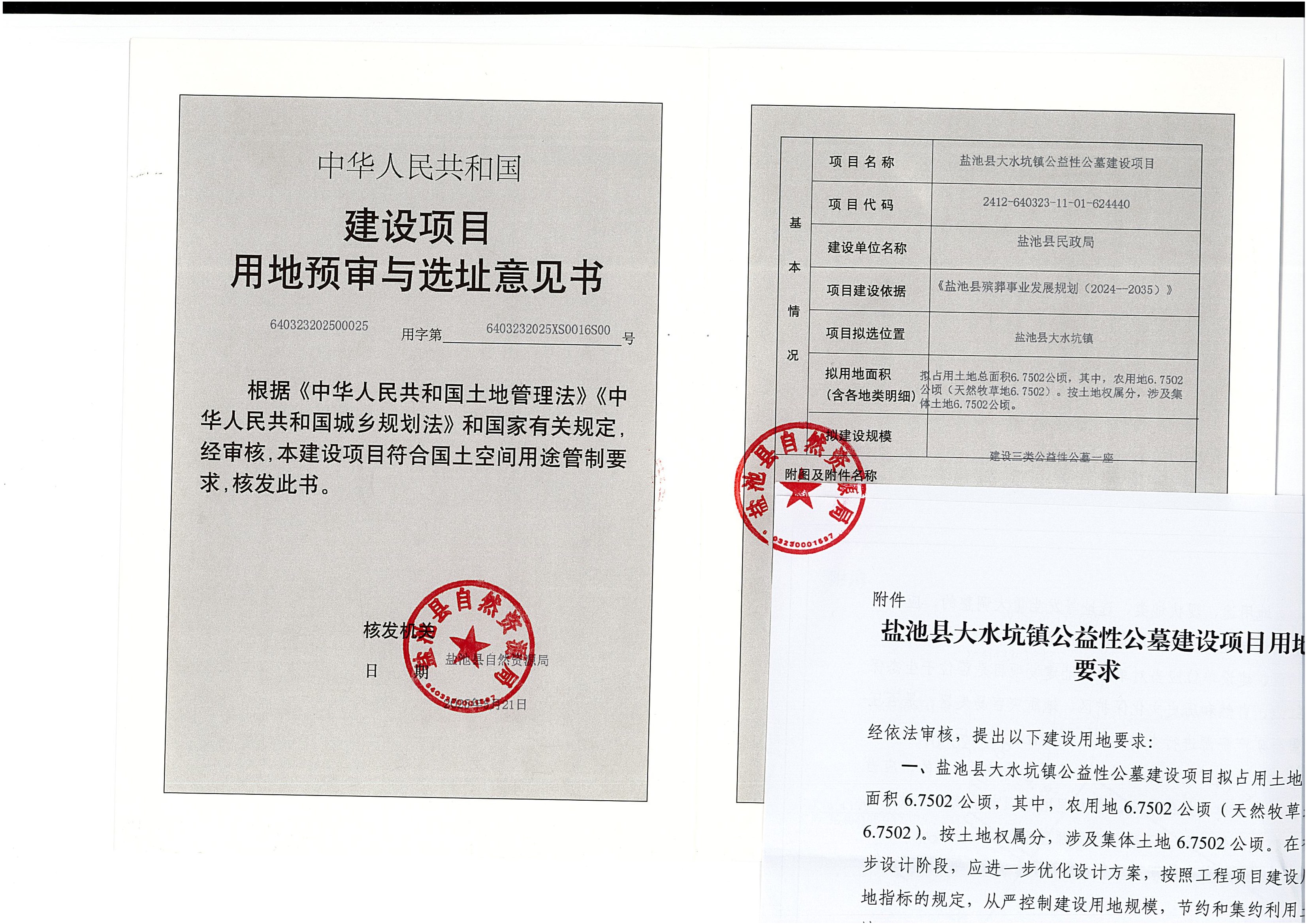 盐池县大水坑镇公益性公墓建设项目用地预审与选址意见书