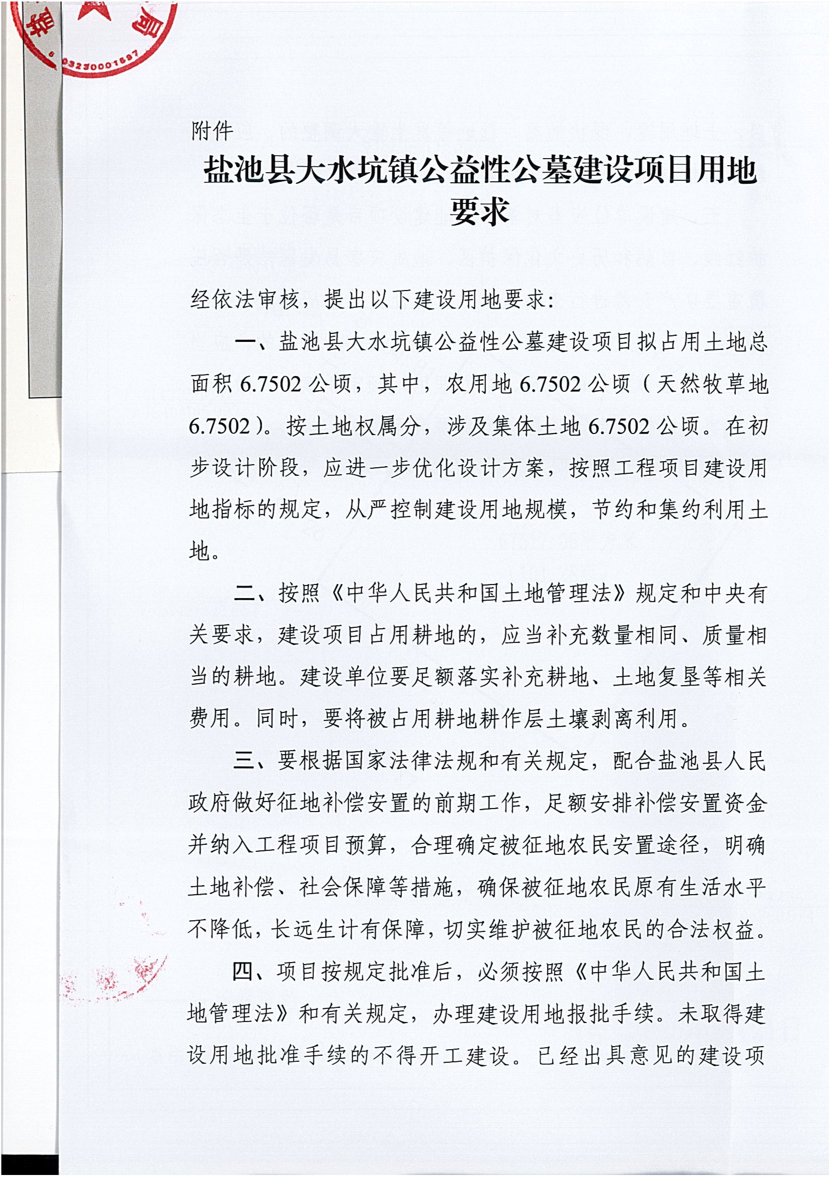 标 题: 盐池县大水坑镇公益性公墓建设项目用地预审与选址意见书