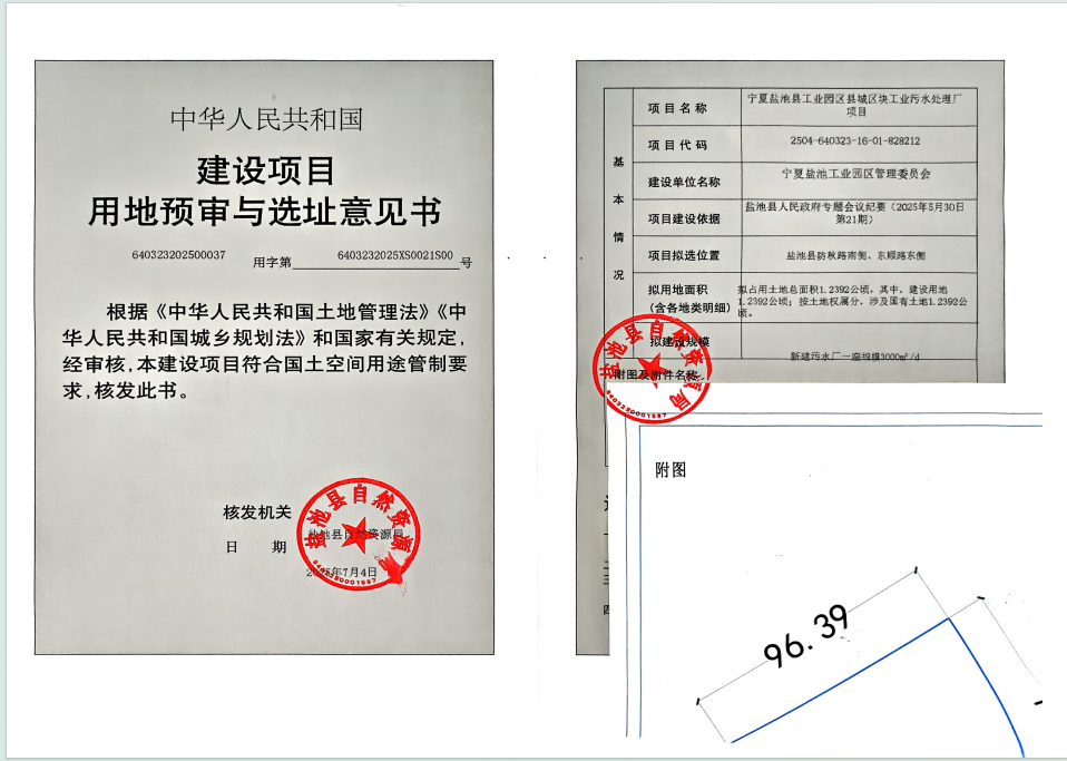 宁夏盐池县工业园区县城区块工业污水处理厂用地预审与选址意见书
