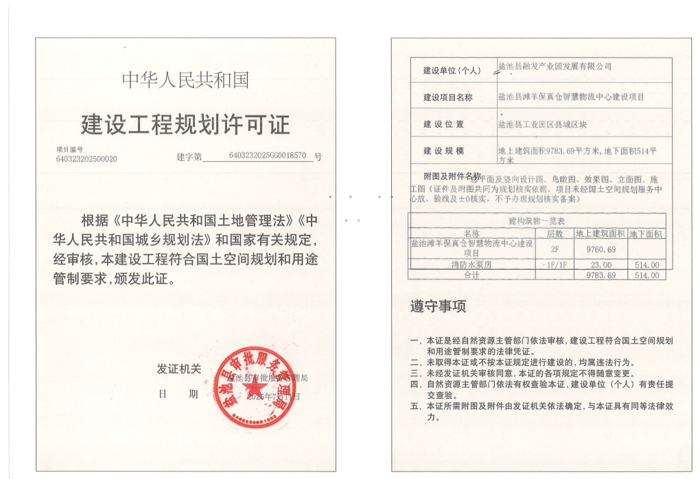盐池县滩羊保真仓智慧物流中心建设项目(盐池县新经济产业园建设项目五期工程)