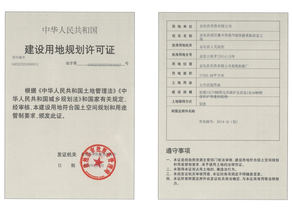 盐池县城区集中供热节能降碳更新改造工程建设用地规划许可证