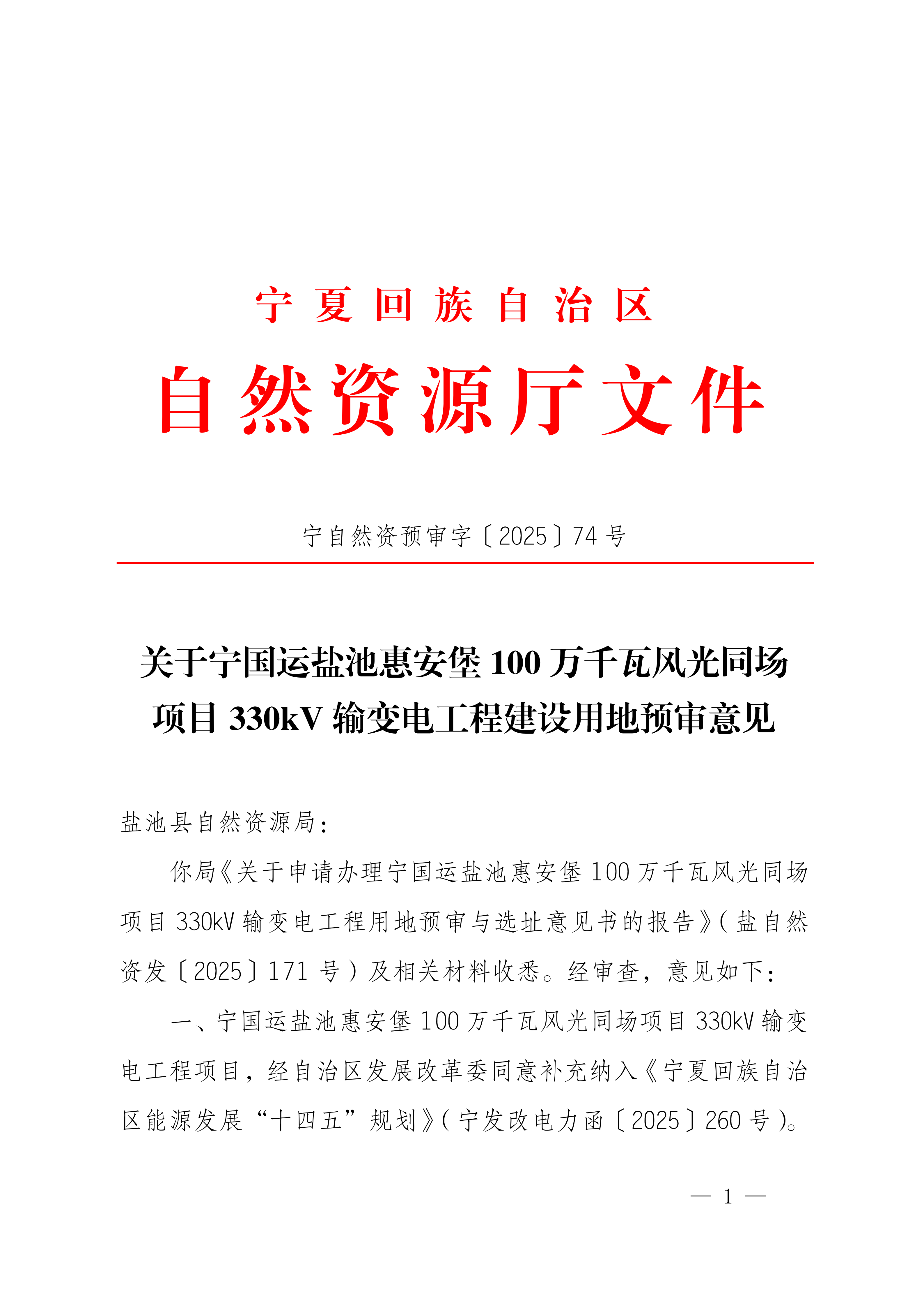 宁国运盐池惠安堡100万千瓦风光同场项目330kV输变电工程用地预审与选址意见书公示