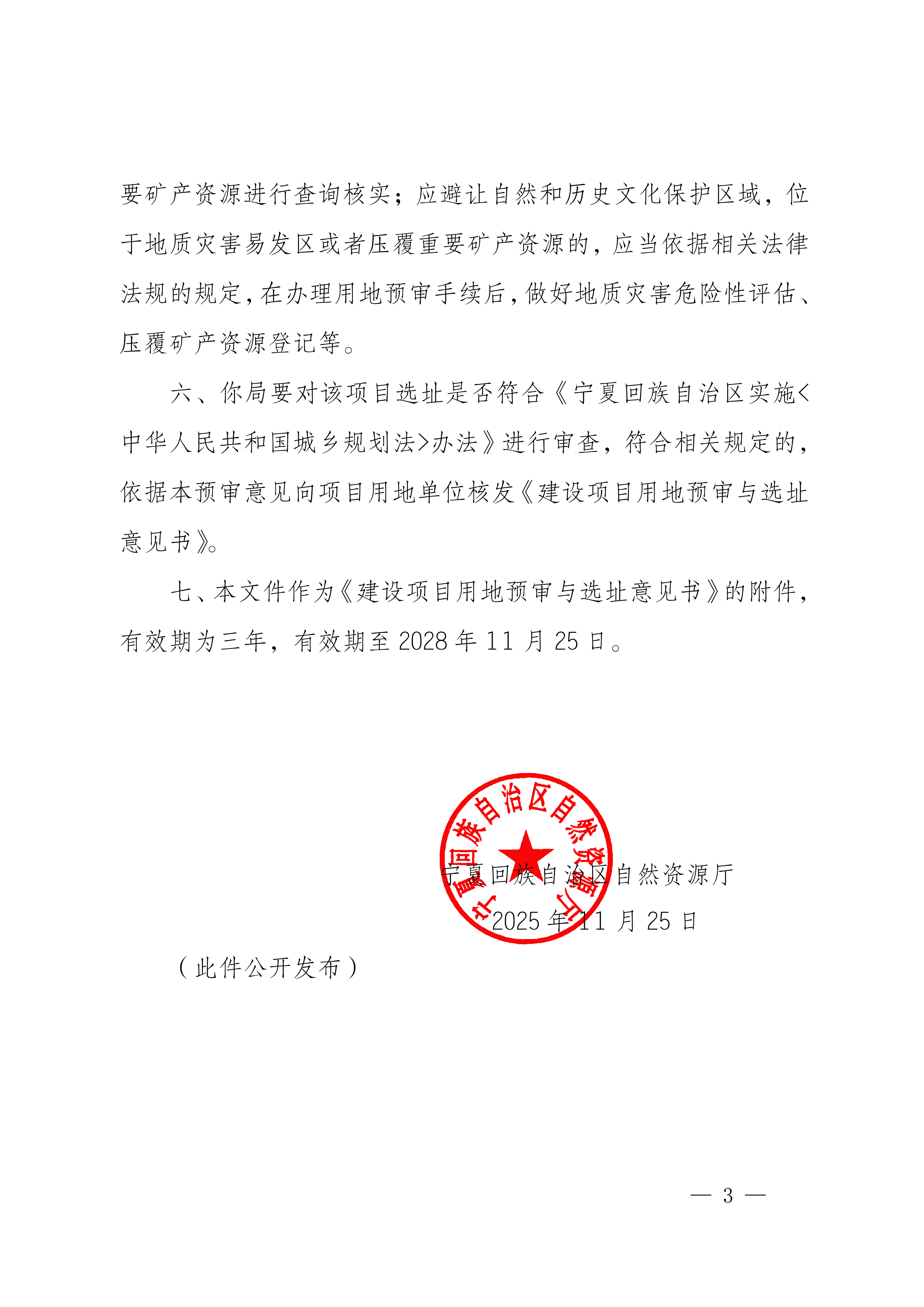 标 题: 宁国运盐池惠安堡100万千瓦风光同场项目330kV输变电工程用地预审与选址意见书公示