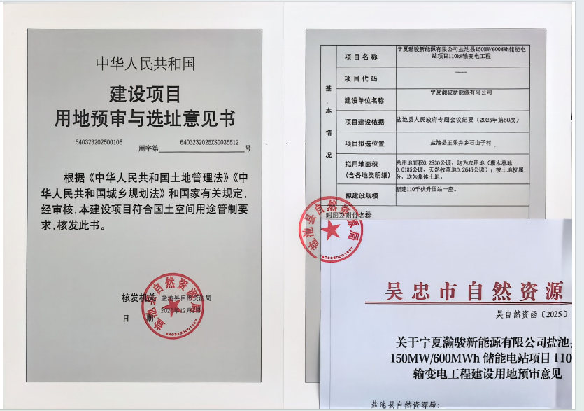 标 题: 宁夏瀚骏新能源有限公司盐池县150MW600MWh储能电站项目110kV输变电工程预审与选址意见书