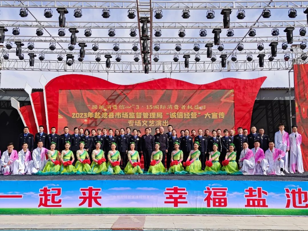 在盐池县2023年“3·15”国际消费者权益日专场文艺演出现场,人声鼎沸、气氛热烈,近两个小时的文艺演出,节目形式多样、异彩纷呈,铿锵有力的经典红歌、饱含深情的诗朗诵、精彩有趣的小品、优美婉转的舞蹈……台上演员演得激情投入,台下观众看得津津有味。