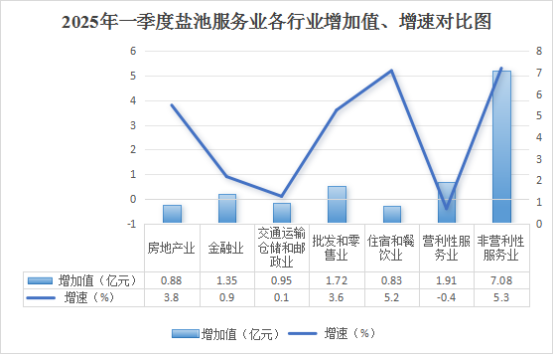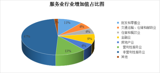 (一)非营利性服务业带动不足。非营利性服务业(主要包括水利、环境和公共设施管理业、教育、卫生和社会工作、公共管理、社会保障和社会组织等行业)实现增加值7.08亿元,占服务业的47.2%,增长5.3%,对全县服务业的贡献率为68.6%,拉动服务业增长2.4个百分点,相较上年同期回落4.4个百分点,对全县服务业影响较大。