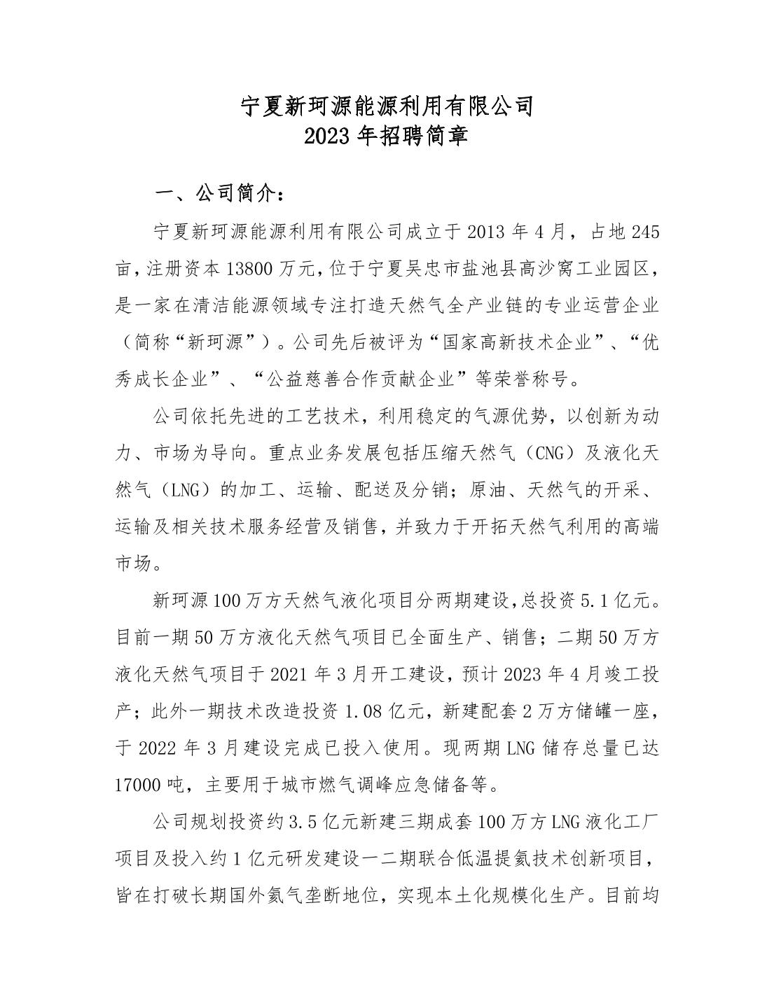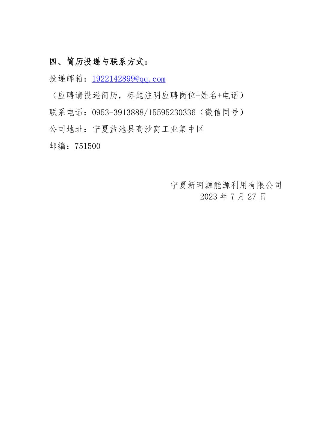 标 题: 宁夏新珂源能源有限公司招聘简章