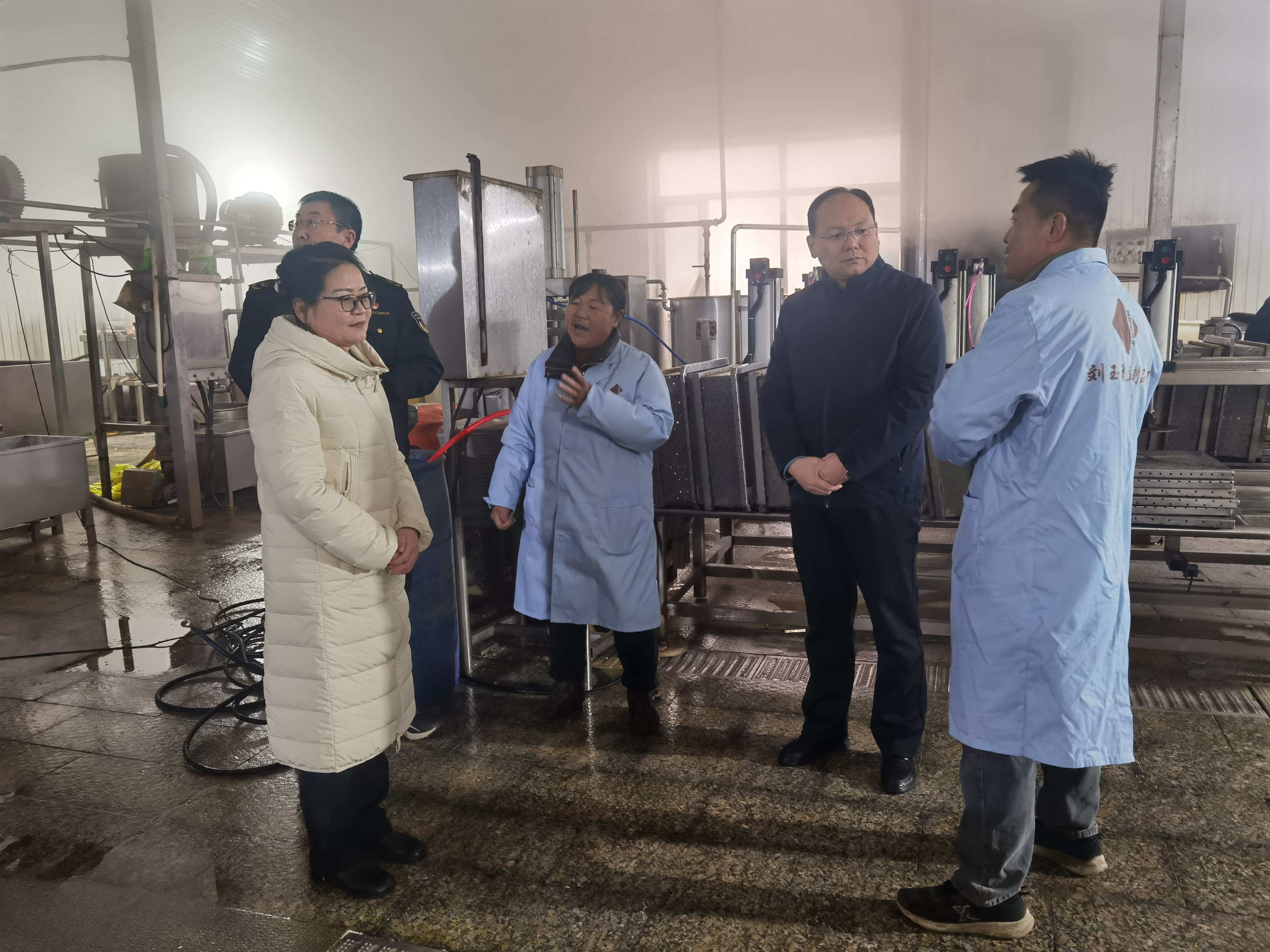 在刘玉花豆制品加工厂,王大鹏一行详细了解了豆腐生产加工全过程,重点对企业落实食品安全主体责任、生产经营过程控制等环节进行督导,要求企业要严格落实食品安全主体责任,把好原料进货、加工生产、人员管理等关键环节,确保不出差错、不出问题。县市场监督管理局要增强主动服务意识,持续开展帮扶工作,针对企业提出的问题及时提供业务指导和需求帮助,助力食品企业安全健康发展。