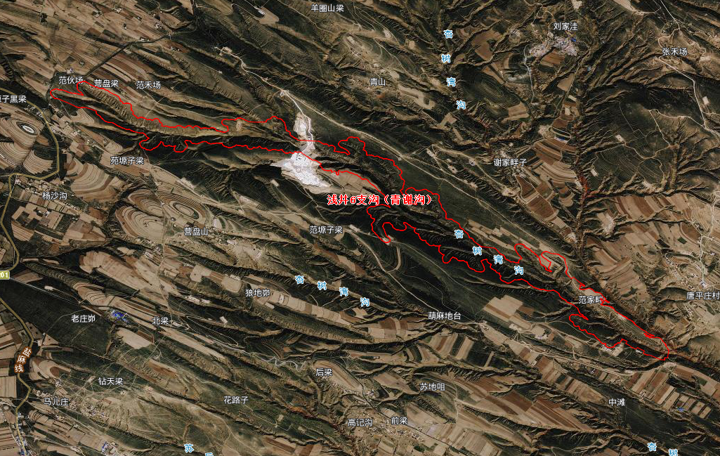 浅井6支沟(青谢沟)位于我县麻黄山乡境内,河道全长9.13公里,由西北向东南方向流经3个行政村,起点为麻黄山乡胶泥湾行政村青山自然村,流经麻黄山行政村、唐平庄行政村,最终由徐畔子自然村流入杏树湾沟。