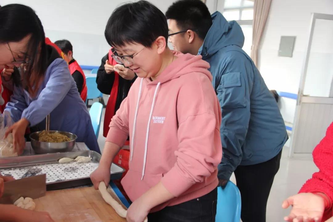 一张张面皮,一团团香馅,在志愿者的巧手制作下变成了形态各异充满爱心的饺子,每一个饱满圆润的饺子里包着的不仅仅是鲜美的馅料,也是满满的情谊,寄托着志愿者们的关怀和暖暖的新春祝福,一份简单的水饺在这个寒冷的冬季为托养中心的残疾人增添了一份温暖,一个个饱含爱心的饺子,也让托养中心的残疾人感受到了温情与关怀。