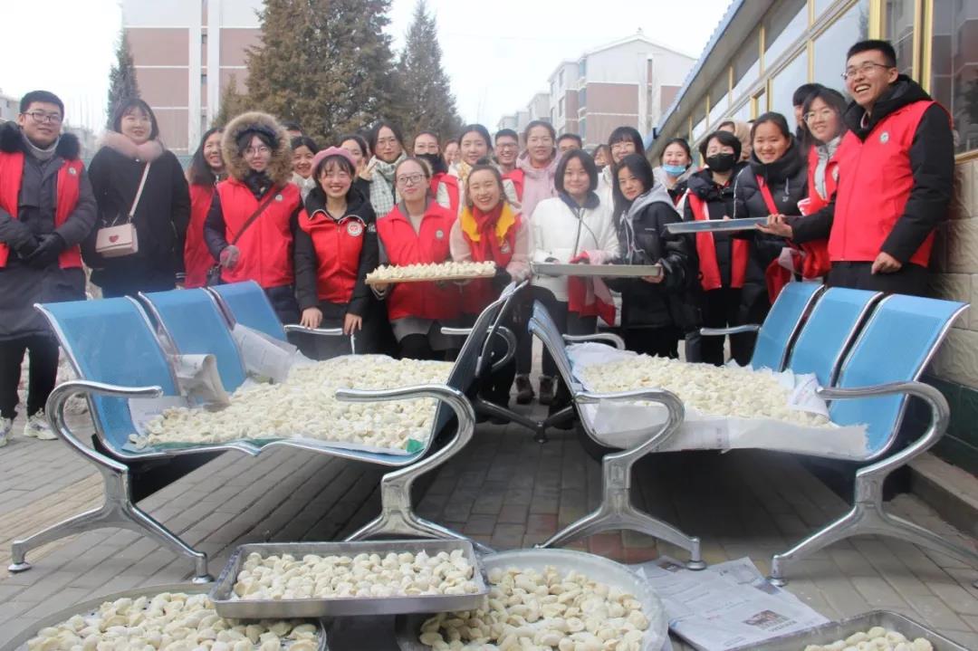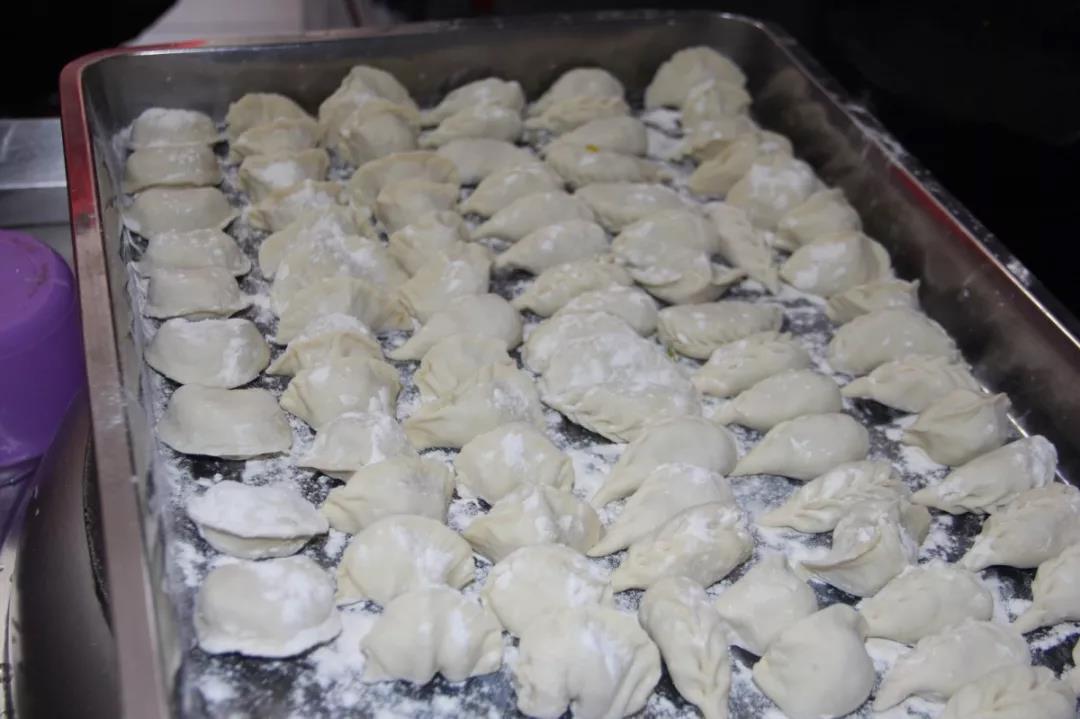 志愿者们分工协作,有专门擀皮的、有专门填馅包饺子的,大家情绪高涨,用自己拿手的方式忙活着,个个都忙都不亦乐乎,显得格外温馨,看着一个个饱满充盈的饺子,大家的喜悦之情溢于言表。