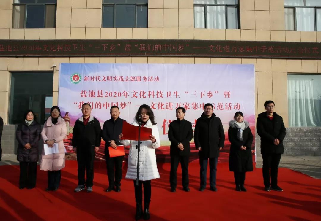 1月14日,全县2020年文化科技卫生“三下乡”暨“我们的中国梦”--文化进万家集中示范活动启动仪式在冯记沟乡举行。县委常委、宣传部部长马瑞英致辞并宣布此次集中示范活动正式启动,县人大常委会副主任强永海出席活动,副县长李国强主持仪式。